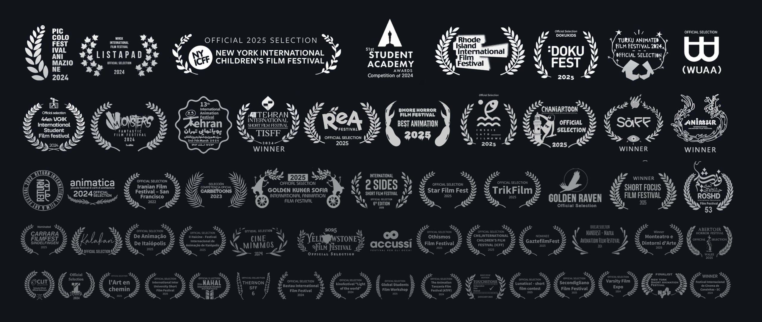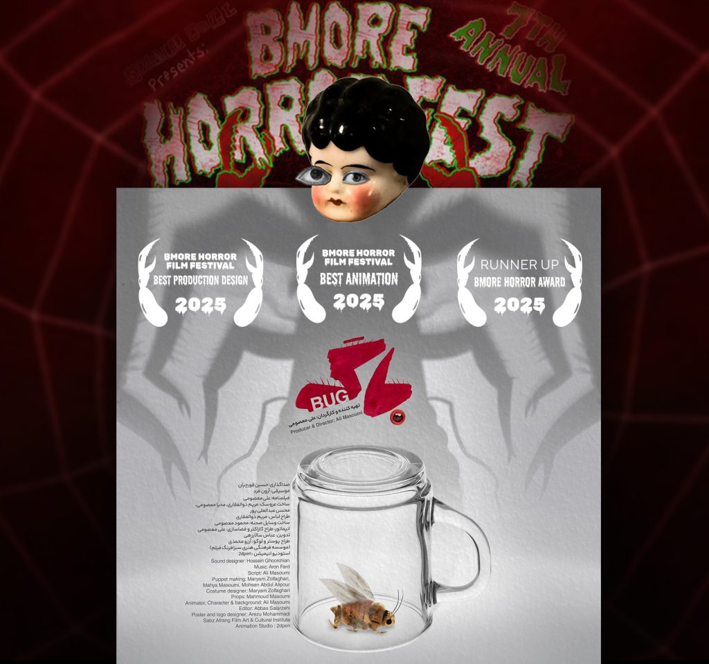 My films have screened at Academy Award–qualifying and BAFTA-qualifying festivals, including the Flickers’ Rhode Island International Film Festival and the New York International Children’s Film Festival, receiving international recognition. BUG has also earned numerous awards, including Best Animation at the Bmore Horror Festival, Comicon Italy, and Tehran International Film Festival, as well as the Best Audience Award at the Short Focus Film Festival in London.